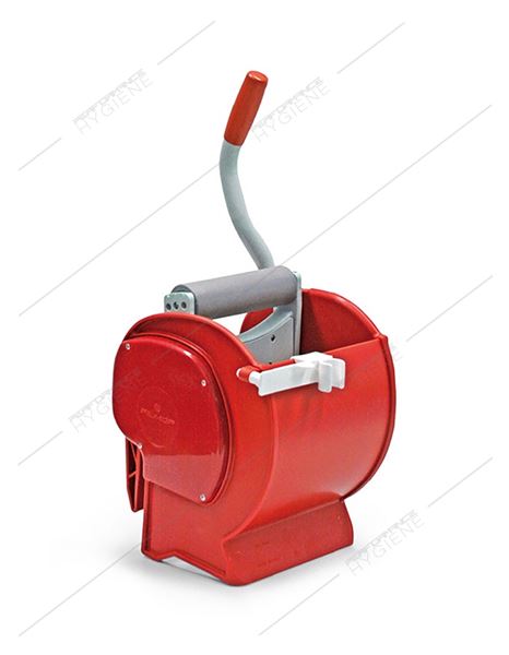 Presse à rouleau réglable Ø 53mm rouge - Rouleau réglable selon l’épaisseur de la frange ou de l’essorage souhaité - Carter en polypropylène rouge - Mécanisme rilsan - Axe du rouleau en inox - Manche en rilsan - Poignée en PVC Ø 22 mm - Avec cache anti-projections.